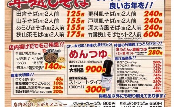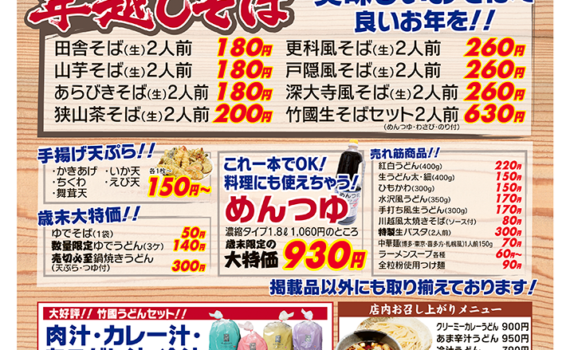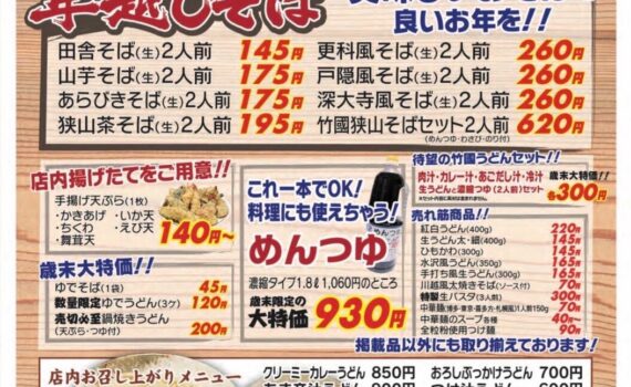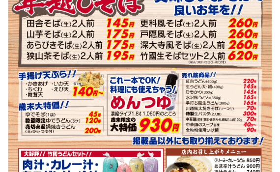 本年も御愛顧、誠に有難うございました。日頃からの感謝を込めて、 大進食品 工場・武蔵野うどん竹國 大 […]